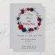 romantic red and navy blue flowers botanical wreath on a grey background birthday invitation