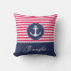 Red Navy Blue Nautical Anchor Design Custom Name Cushion