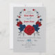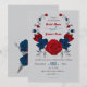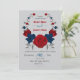 red & navy flowers botanical wreath wedding invitation