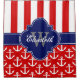 Red, Navy Blue, White Nautical Anchor, Stripe with Initial Monogram on Navy Blue Quatrefoil with Ribbon