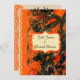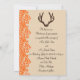 Red Neck Wedding Invitation with orange camouflage, lace and deer antlers.