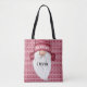 This Christmas tote bag design features a Nordic Gnome with a long white beard that you can personalise with a name. There is a red and white snowflake faire isle background pattern behind the gnome.
