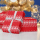 This fun wrapping paper is designed with a snowflake and reindeer pattern typical of Norway, Nordic design. The pattern is in white against a bright red background and is reminiscent of the Ugly Christmas Sweaters that are so fun to wear! It's just perfect for gift wrapping for the holidays!