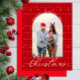 Celebrate the season with this cosy and festive Christmas card featuring a red Nordic sweater knit pattern, elegant arch photo frame, and warm “Merry Christmas” script. Personalise with your photo and family name for a heartfelt holiday greeting that pairs rustic charm with modern style.