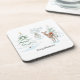 This Christmas or holiday beverage coaster features a whimsical drawing of a deer walking through a snowy pine forest. The deer is wearing a red nose and some of the trees are decorated. The Holiday message text is fully customizable so you can substitute your own greeting or add your name. Original artwork. Copyright Leah Wiedemer.