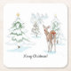 Red Nose Deer in the Snowy Wood Holiday Square Paper Coaster