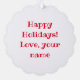Red nose reindeer Paper Christmas Ornament Card. Personalise with your own family name and Holiday greeting. Funny Rudolph the red nose reindeer cartoon design. Fun for kids and adults. Santa's reindeer names; Rudolph, Dasher, Dancer, Prancer, Vixen, Comet, Cupid, Donner and Blitzen. Little animal deer with big antlers illustration.