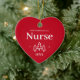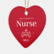 First Christmas as a nurse red heart ornament for a new job in nursing. Elegant porcelain ceramic holiday ornaments in white with black lettering. Featuring Christmas trees and stars.