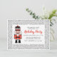 Invite friends and family to a Christmas party with this cute holiday nutcracker party invitation. An elegant Red and silver faux glitter Christmas nutcracker decorates this invitation with an elegant faux glitter border. Customise it with your party details. Designed for you by Blackberry Boulevard.