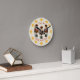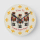 A trio of red Christmas nutcrackers stand at the ready on a coordinating cream coloured background. Twelve gold fleur-de-lis mark the hours instead of numbers. The text reads, "Time To Crack Some Nuts" and can be changed to personalise your wall clock. The background colour may be changed by using the Edit Design button.