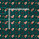 Festive pug wearing red nutcracker outfit ready for Christmas! surrounded by snowflake design on green background.