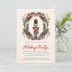 Invite your friends, family, or colleagues to join in the seasonal celebration with these sophisticated Christmas party invitations. The design showcases event specifics in beautiful lettering, complemented by a watercolor Nutcracker Wreath in Holiday red and cream colours. Tailor this refined invitation to suit your event, whether it's a Christmas gathering, holiday soirée, corporate event, holiday cocktail party, or another festive occasion.