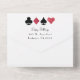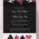 This convenient all in one wedding invitation features elegant typography and an accent graphic of playing card suits in white and cherry red faux glitter. Perfect for a Las Vegas wedding in a little chapel off the strip, all you need is love and a witness or two!