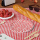 Merry Christmas typography paper plate red on white pattern. Customise the background colour among other options in an easy way.