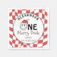 Red One Happy Dude Christmas 1st Birthday Party Decor Napkins - Birthday Party Decorations - One Merry Dude - Celebrate your little dude's big one in a festive and fun way this Christmas Holiday season with this cute red and white chequered retro smiley face wearing a Santa hat 1st Birthday Party Party Personalised Napkins. Featuring red and white wavy chequerboard, classic Holiday colours. A smiley face wearing a hand drawn Santa hat with lightning eyes adds to the fun, retro festive season theme. Customise these editable first birthday party personalised napkins template for boys with your own event details.