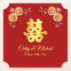 Red orange floral Chinese wedding double happiness Paper Coaster