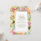 Red Orange Floral Green Leaves Gold 18th Birthday Invitation