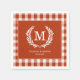 Red-Orange Gingham Monogram Crest Custom Napkin