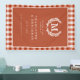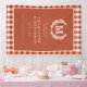 Red-Orange Gingham Monogram Crest Wedding Welcome Banner