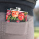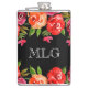 Red Orange Pink Flowers & Leaves on Black Girly Hip Flask
