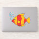 A cartoon red orange tropical fish. He is swimming in the blue ocean while making bubbles. This cute kawaii illustration is good for sea and aquarium lovers and to bring back memories of happy summer tropical holidays.