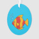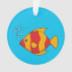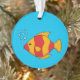 A cartoon red orange tropical fish. He is swimming in the blue ocean while making bubbles. This cute kawaii illustration is good for sea and aquarium lovers and to bring back memories of happy summer tropical holidays.