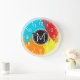 Red Orange Yellow Blue Mosaic Modern Monogram Large Clock