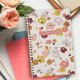 Colourful, hand-drawn flowers in grey, pink, orange, yellow, and purple fill the cover of this feminine spiral-bound notebook. A simple, yet elegant name label allows the customer to personalise the journal for themselves or a loved one. The design is pretty enough for adults and children alike!