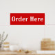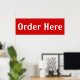 This bright red Order Here diner sign poster is great for a kitchen, cafe, diner, restaurant, basement, coffee shop, vintage decor, retro decor...etc.
