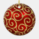 Round ceramic ornament with an image, on both sides, of a beautiful red Christmas ornament with glittery gold swirls. See the entire Christmas ornament collection under the HOME category in the HOLIDAYS section.