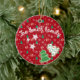 Add timeless elegance to your Christmas tree with this personalizable ceramic ornament featuring a festive design of sparkling Christmas trees, colorful ornaments, and delicate snowflakes.