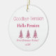 Celebrate the next chapter of life with our red Pagoda Christmas Trees Retirement 1-Photo Ornament. This ornament features the playful phrases "Goodbye tension, Hello Pension" and "First Christmas Retired" alongside our elegant blue pagoda Christmas trees. Personalise it with the year on the front, and customise the back with your own photo to create a meaningful keepsake. This retirement ornament is both fun and sophisticated, making it the perfect gift for someone retiring or a timeless addition to your holiday décor. Explore our Chinoiserie Pagoda Christmas Collection and Ornament Collection for more unique designs.