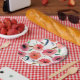 This colourful contemporary floral paper plate features painted poppies in shades of red, watermelon, pink and orange with scattered green leaves for a bright and beautiful combination. It coordinates with the "Red Painted Poppies Floral Wedding Collection" but is also suitable for bridal showers, birthday parties, or other special occasions. Choose the 7" plate as a cake plate and the 9" plate for hors d'oeuvres or more substantial food items. The floral elements used in this design were adapted from flowers by createthecut. See the matching wedding invitation here: