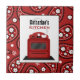 A kitchen tile featuring an illustration of a retro red stove over a background of red paisley. Personalise with your name.