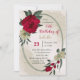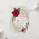 Unique birthday party invitation featuring romantic red and pale yellow flowers and green leaves botanical geometric frame.