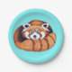 Red Panda bear on turquoise Paper Plate