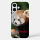 Red Panda on a snowy log cell phone case. You'll love this cell phone case with an adorable photo of a Red Panda sitting on a snowy log. The words Red Panda are printed in red. Too cute!