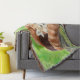 A quality printed throw has its advantages. This is a much finer weave throw than its loopier cousins, and though lighter, it is worth the investment for custom room accessorizing. The back is much prettier than the typical brown, and the fringe on the long sides very vivid, the selvage nicely done. Before photographing, I washed the throw in cold water, delicate, with a thicker woven throw the same size. On tumble dry low, this throw was dry in half the time as the other. This is a very practical quality if you use throws for furniture covers or to wrap up in frequently. The sleekness of the fabric makes it a great layer for accenting or protecting without the feeling of sitting on too much stuff. Perfect for napping or when you feel a light chill coming on. The color printing is beautiful and on this fabric, matched the design and color of my Photoshop image. This is an advantage for blending room fabrics and colors. The fringe on the short sides prints the colors from the design image and therefore varies from the side fringe. I streaked a white fractal line through the plaid pattern to give the illusion of weaving. This printed as crisp as an illusory thread, and put some white in the short side fringe, showing another advantage of print vs loomed- for artistic purposes, line lines, detail, and color integrity can be planned and preserved. My loomed throws have color limitations and more of a needlepoint texture. Print throws reproduce an exact image. The throw felt a little stiff straight out of the package, but this went away in the first delicate wash. Of course I searched the wash water for ink or bleeding and there was none.