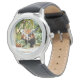 The leather band makes it seem like an “older kids” watch.   Easy to read the time. Clear printing and image.