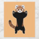 Funny red panda hands up standing vector clipart toon icon, customisable background colour and text.