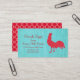 A red, quatrefoil patterned silhouette of a rooster is on a turquoise coloured background with a wood grain texture.