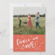 The vibrant red background complements the white lettering, creating a cosy and inviting atmosphere. This balance of hues allows the family photo to stand out beautifully, making it the heart of the design. The simplicity of the layout draws attention to the message of peace and togetherness, while the handwritten style adds a cute, authentic charm that appeals to families who cherish heartfelt traditions.