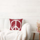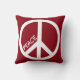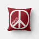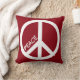 A red pillow with a large white peace sign and customisable text. Keep the word peace or add a name instead!