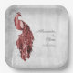 Personalise a unique paper plate for wedding reception guests with a set of Red Peacock Bridal Shower Paper Plates. Paper Plate design features an elegant peacock against delicate foliage and grunge background. Personalise with the groom and bride's names along with the wedding date. Additional wedding stationery available with this design as well.