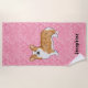 Red Pembroke Welsh Corgi On Pink Hearts With Name Beach Towel