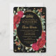 Red Peonies Floral Butterflies Gold Quinceañera Invitation