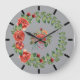 Red Peonies wreath clock on a grey background. Permanent pretty design with buds and green leaves. Thanks to the Hungryjpeg for some of the elements in the design