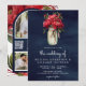 Red Peony Floral Mason Jar QR Code Blue Wedding Invitation
