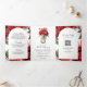 Red Peony Floral Mason Jar QR Code Wedding Tri-Fold Invitation