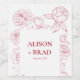 Red Peony Line Drawing Wedding Invitation, Details Wine Label